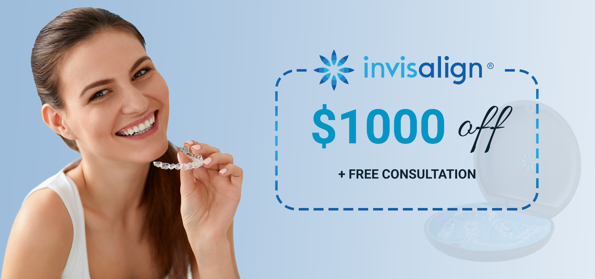 *Valid for 90 days. New Invisalign patients only. Cash patients only. Full Invisalign treatment $6,300 retail value; price may vary based on age, degree of correction, and length of treatment. Terms & conditions may apply. No cash value; may not be combined with previous offers or promotions.